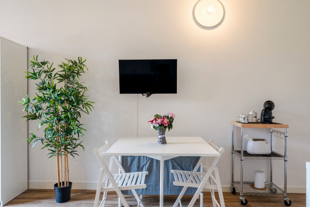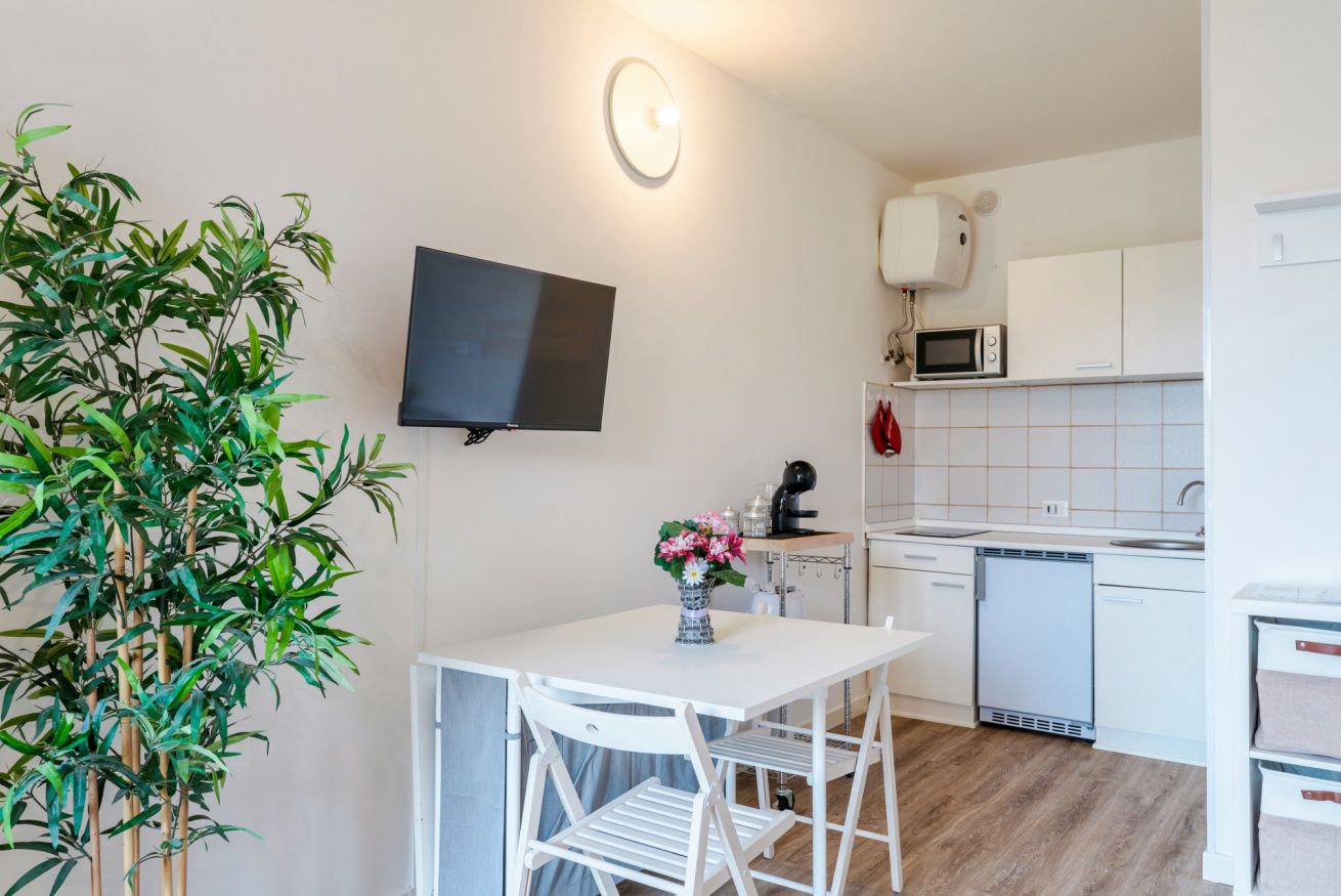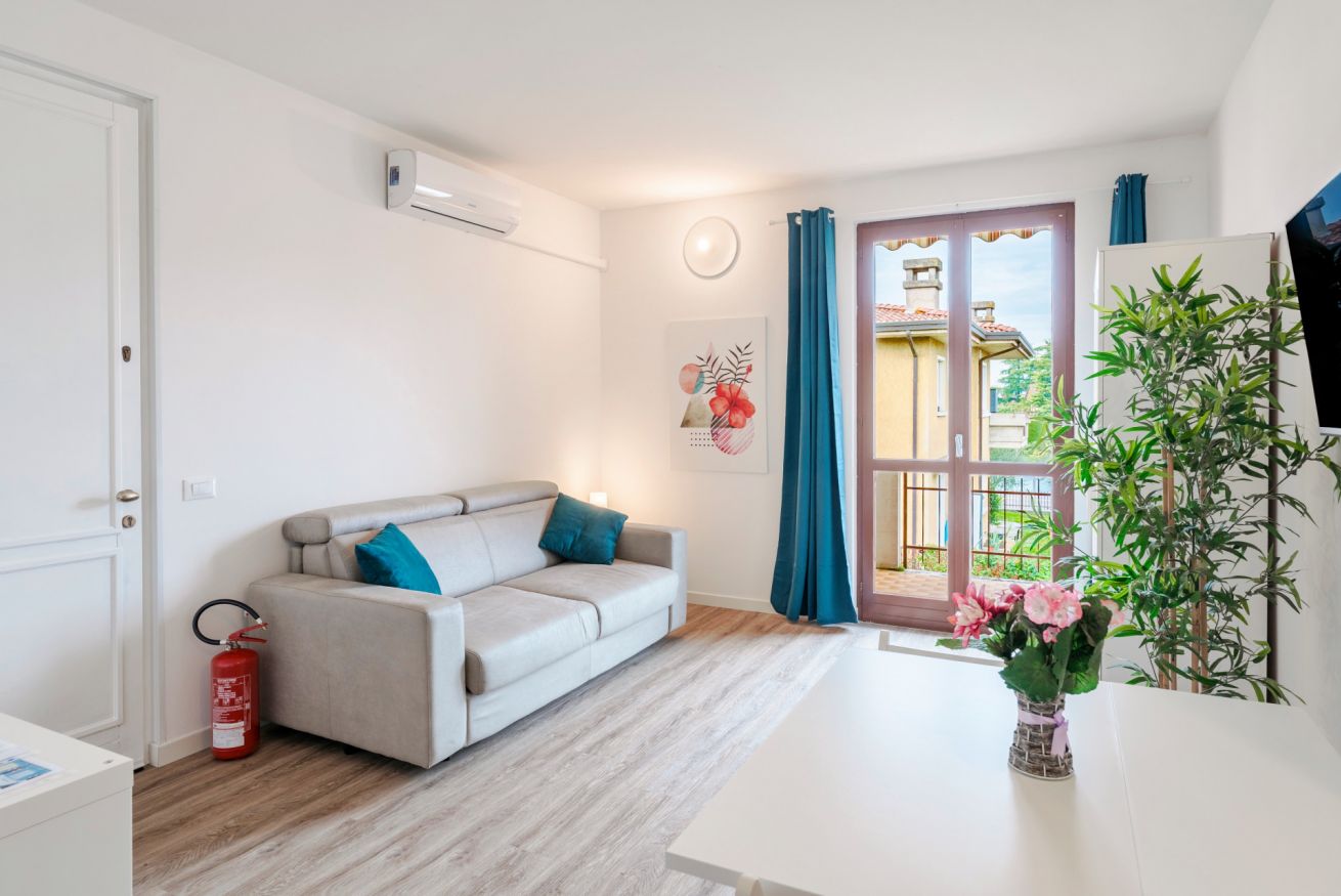 Grazioso e ristrutturato appartamento monolocale con ampia terrazza abitabile, sito al primo ed ultimo piano di un piccolo residence con piscina nel cuore della località di Lugana di Sirmione, a pochi passi dal lungolago e dalla via principale con i numerosi e rinomati locali, supermarket, panificio, farmacia e molto altro.