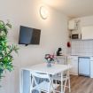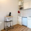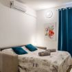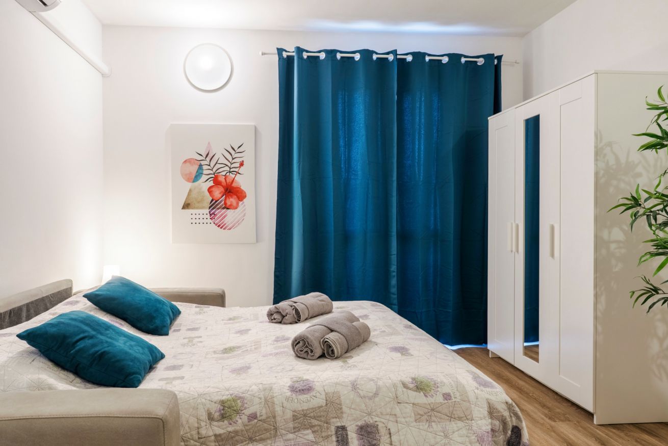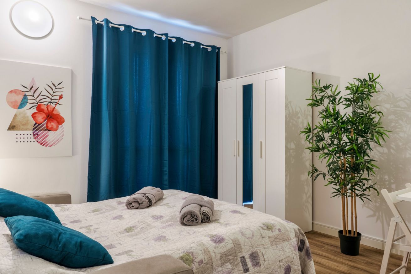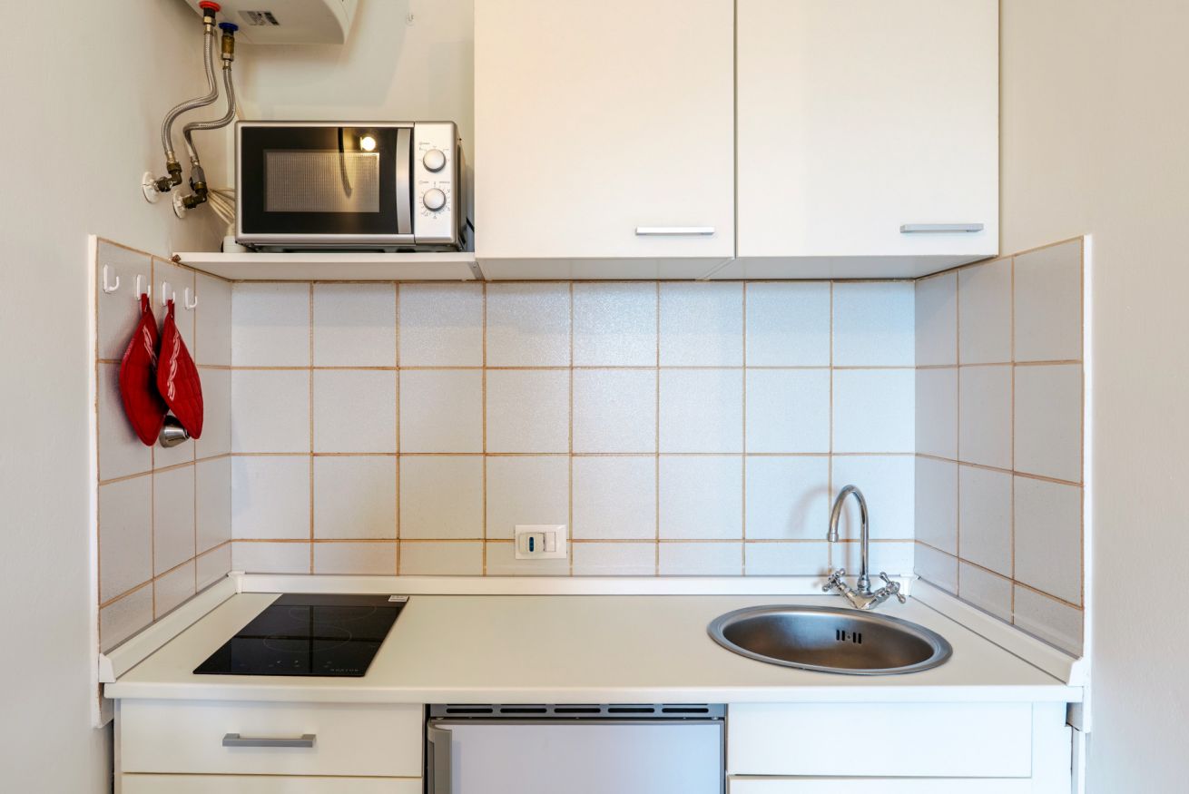 Tra le dotazioni troverete: aria condizionata, forno microonde, macchina per caffé mod. Dolce Gusto, piccolo frigo con freezer, bagno finestrato con doccia.