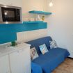 E' situato al primo ed ultimo piano, ed è composto da un soggiorno con angolo cottura (cucina ad induzione), forno microonde, frigo-freezer, TV, zona pranzo e terrazza con vista sulle piscine per grandi e per bambini, camera matrimoniale, cameretta con 1 letto singolo e bagno appena ristrutturato a nuovo, con doccia e lavatrice. Connessione Internet WiFi gratuita.