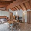 La cucina è attrezzata con piano cottura, forno, frigorifero e freezer. Il soggiorno ha una zona pranzo ampia, con travi a vista eleganti e zona divano con TV a schermo piatto. Si trovano inoltre una camera matrimoniale, una camera singola e due bagni finestrati con doccia. Completano il tutto l'impianto di aria condizionata, internet wifi e un posto auto esclusivo all'interno della corte.