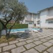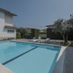 Villetta a schiera, su tre piani, con porticato, giardino e piscina a Sirmione, sul lago di Garda, a 100 metri dalla spiaggia Brema. Luogo silenzioso e possibilità di parcheggio. La casa fa parte di un complesso residenziale di 4 unità.